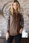 This top features a stylish snakeskin print design with raglan sleeves and half-button detail. The unique combination of patterns and details adds a touch of sophistication to the top. It is versatile and can be paired with jeans for a casual look or dressed up with trousers for a more polished ensemble. Elevate your wardrobe with this chic and trendy snakeskin print raglan sleeve top with half-button detailing.